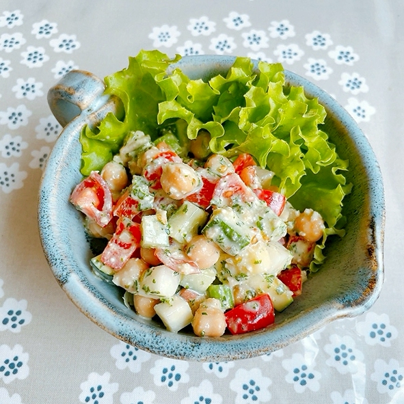 ひよこ豆とカラフル野菜のチョップドサラダ~万能塩麴ジェノベソース~