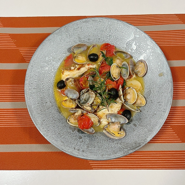白身魚と野菜のみりん蒸し(アクアパッツア)